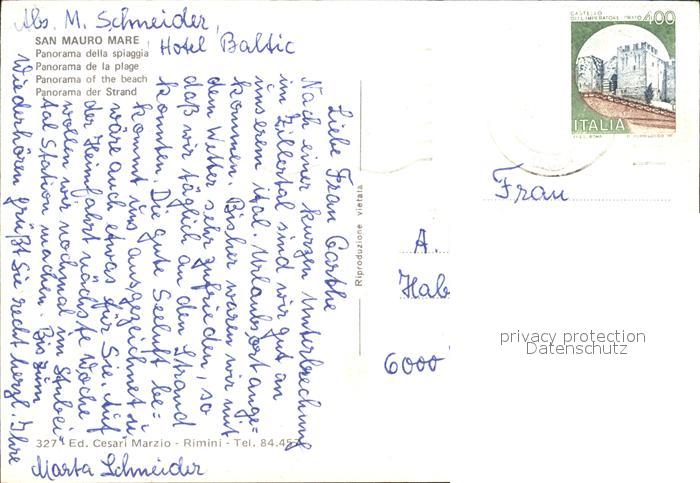 old postcard San Mauro Mare Panorama della spiaggia Strand postalisch gelaufen Erhaltung siehe scans
