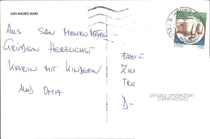 old postcard San Mauro Mare Promenade Strand postalisch gelaufen Erhaltung siehe scans