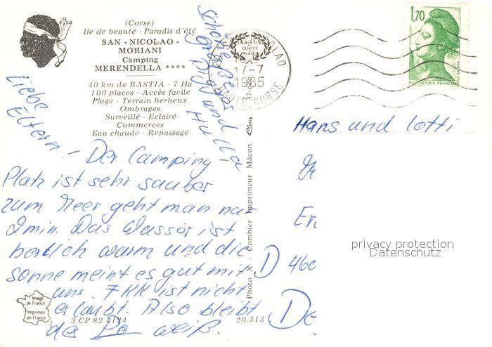 13244504 carte postale San-Nicolao Camping Merendella Fliegeraufnahme postalisch gelaufen Erhaltung siehe scans [FriedD77] KatCode: 1117002B22B313
