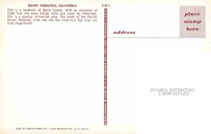 72756845 San Rafael California Mount Tamalpais postalisch nicht gelaufen Erhaltung siehe scans [NatalD47] KatCode: 14140050000000