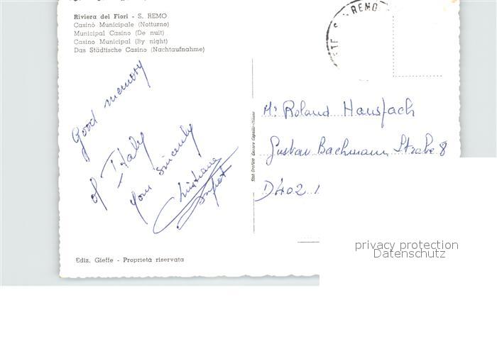 old postcard San Remo Casino Municipale postalisch gelaufen Erhaltung siehe scans