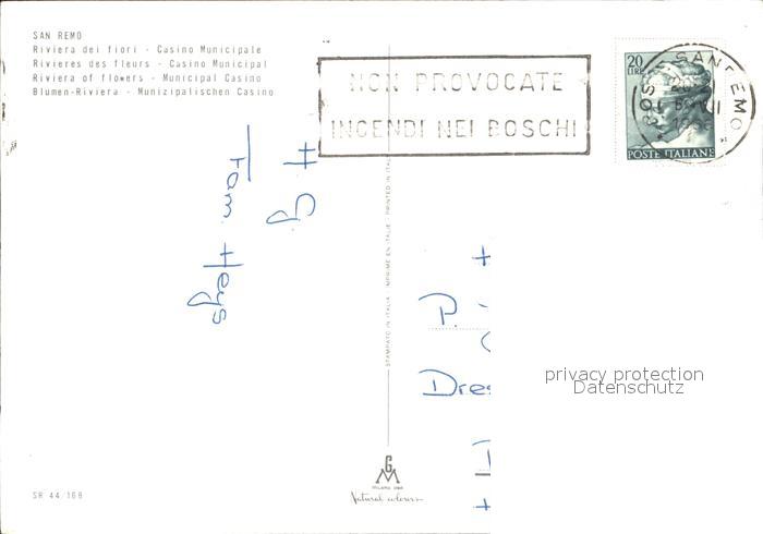 old postcard San Remo Casino Municipale postalisch gelaufen Erhaltung siehe scans