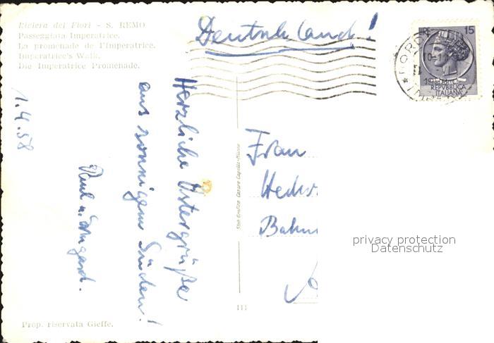 old postcard San Remo Die Imperatice Promenade postalisch gelaufen Erhaltung siehe scans