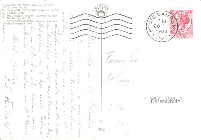 old postcard San Remo Die Russische Kirche postalisch gelaufen Erhaltung siehe scans