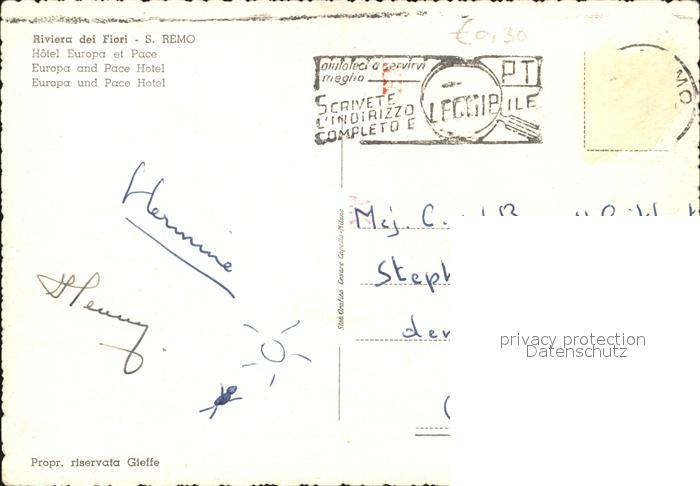 old postcard San Remo Hotel und Platz Europa postalisch gelaufen Erhaltung siehe scans