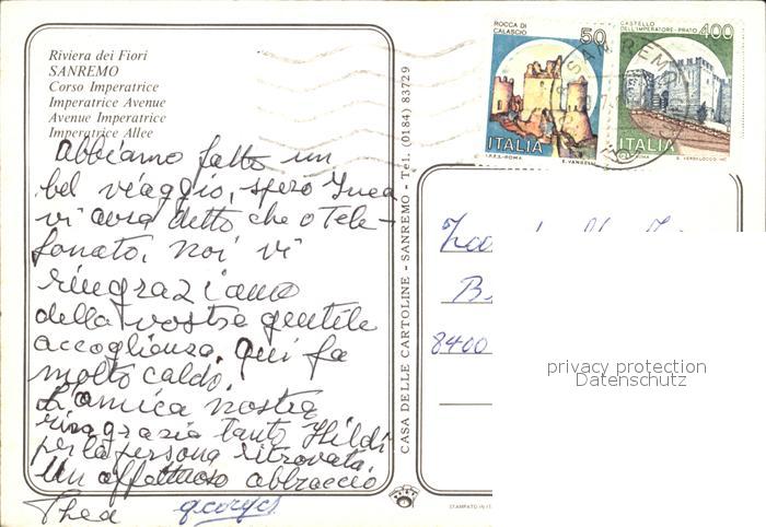 old postcard San Remo Imperiace Allee postalisch gelaufen Erhaltung siehe scans