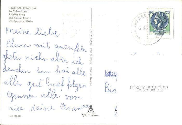 old postcard San Remo La Chiesa Russa postalisch gelaufen Erhaltung siehe scans