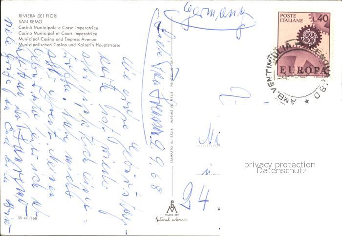old postcard San Remo Munizipalisches Casino Kaiserin Hauptstrasse postalisch gelaufen Erhaltung siehe scans