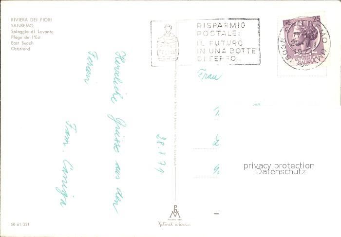 old postcard San Remo Oststrand postalisch gelaufen Erhaltung siehe scans