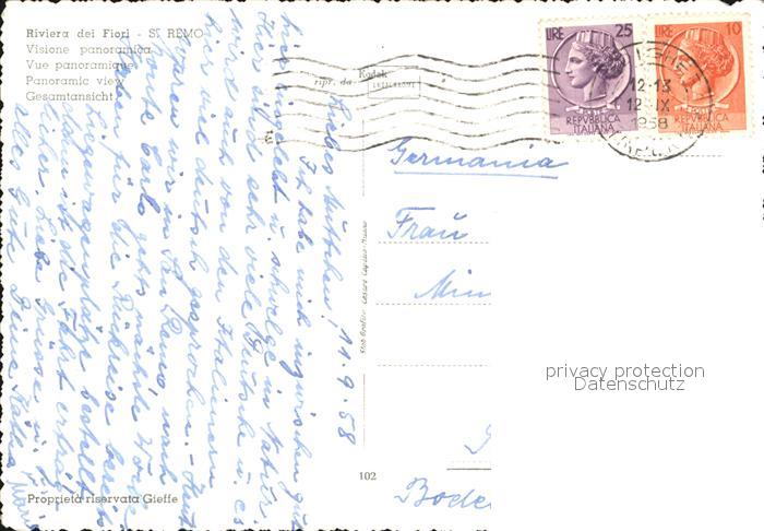 old postcard San Remo Panorama postalisch gelaufen Erhaltung siehe scans