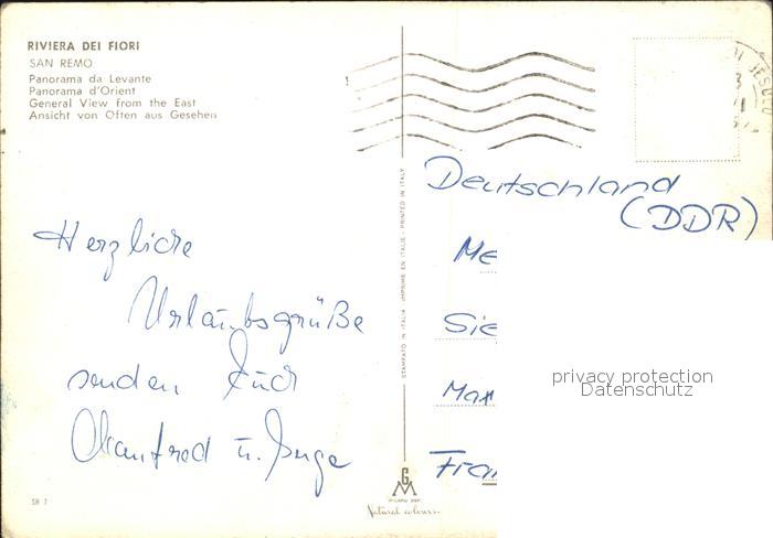 old postcard San Remo Panorama da Levante postalisch gelaufen Erhaltung siehe scans