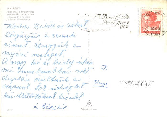 old postcard San Remo Passeggiata Imperatrice postalisch gelaufen Erhaltung siehe scans