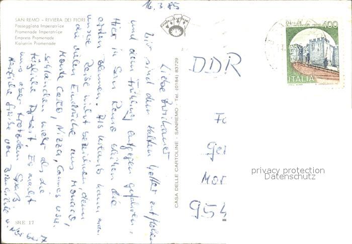 old postcard San Remo Passeggiata Imperatrice Kaiserin Promenade Palmen postalisch gelaufen Erhaltung siehe scans