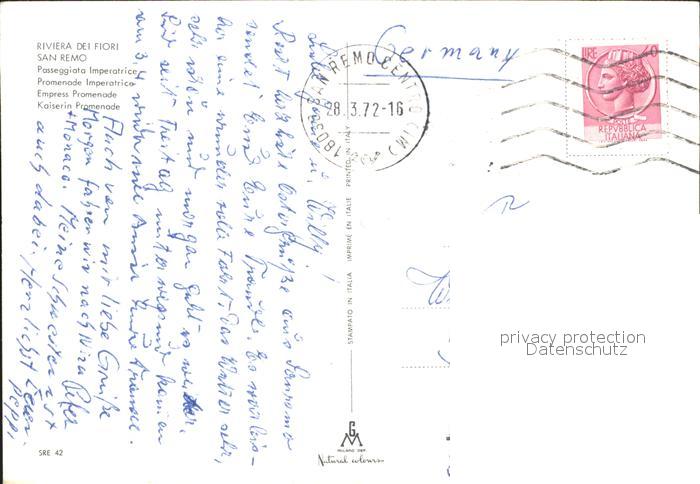 old postcard San Remo Riviera dei Fiori Kaiserin Promenade postalisch gelaufen Erhaltung siehe scans