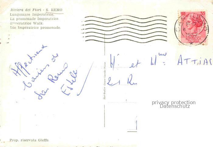 74043294 old postcard San Remo SANREMO Liguria IT Lungomare Imperatrice postalisch gelaufen Erhaltung siehe scans [WerneD78] KatCode: 11240