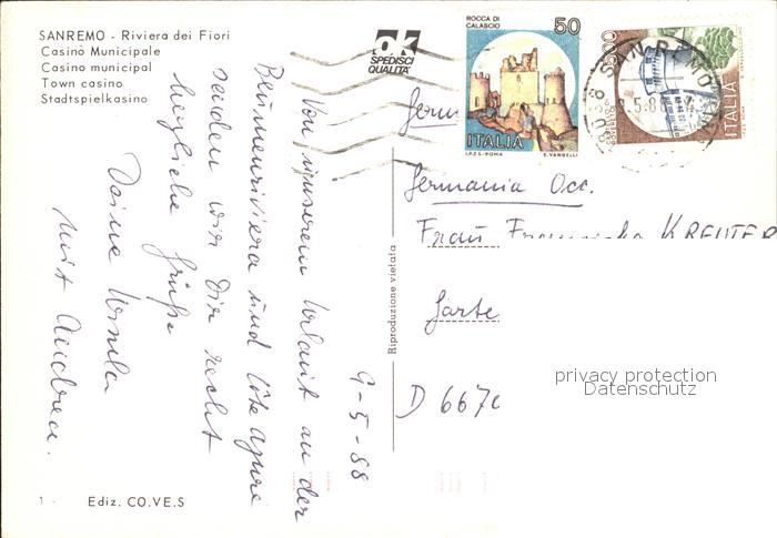old postcard San Remo Spielcasino postalisch gelaufen Erhaltung siehe scans