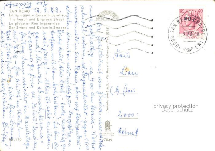 old postcard San Remo Strand Kaiserin-Strasse postalisch gelaufen Erhaltung siehe scans