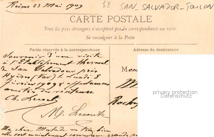13554206 carte postale San Salvador Toulon Palmen postalisch gelaufen Erhaltung siehe scans [WerneD78] KatCode: 11170083283137