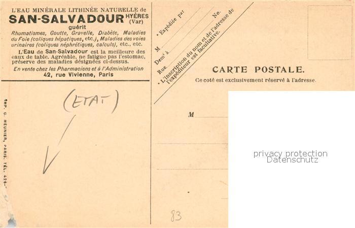 13554929 San Salvadour Eau Minerale Lithinee Naturelle de Hyeres postalisch nicht gelaufen Erhaltung siehe scans [WerneD78] KatCode: 11170083283069