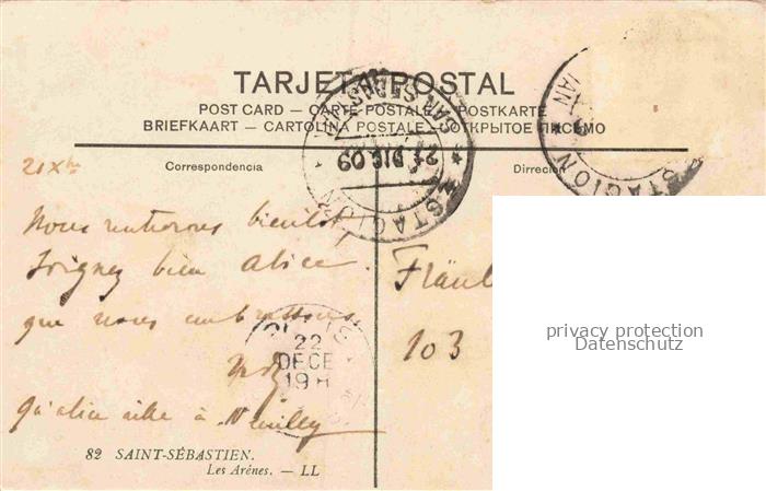 74099952 old postcard SAN SEBASTIAN DONOSTIA Saint-Sebastien Pais Vasco ES Plaza de Toros postalisch gelaufen Erhaltung siehe scans [WerneD78] KatCode: 11510