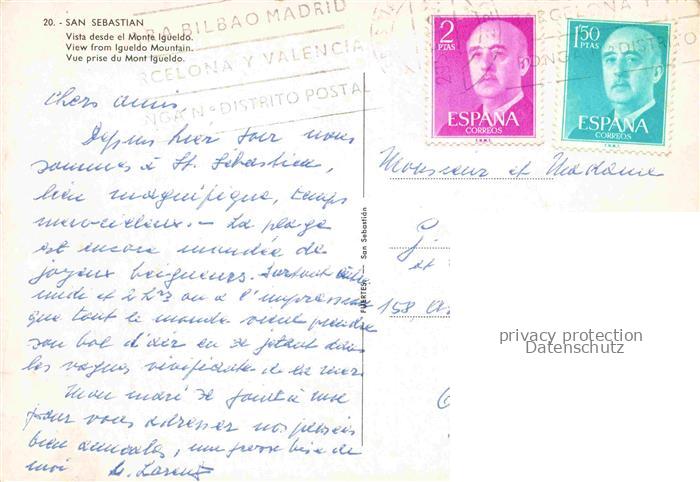 74088448 old postcard SAN SEBASTIAN DONOSTIA Saint-Sebastien Pais Vasco ES Vista desde el Monte Igueldo postalisch gelaufen Erhaltung siehe scans [FriedD77] KatCode: 11510