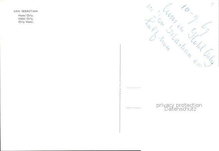 San Sebastian Pais Vasco ES Hotel Orly postalisch nicht gelaufen Erhaltung siehe scans