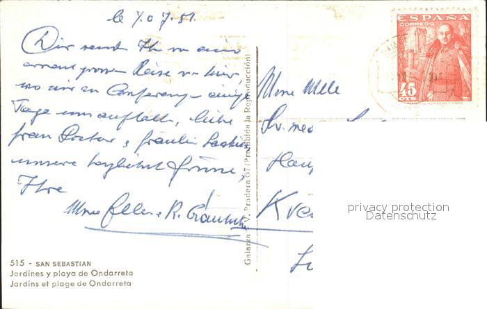 alte Postkarte San Sebastian Pais Vasco ES Jardines y playa de Ondarreta postalisch gelaufen Erhaltung siehe scans