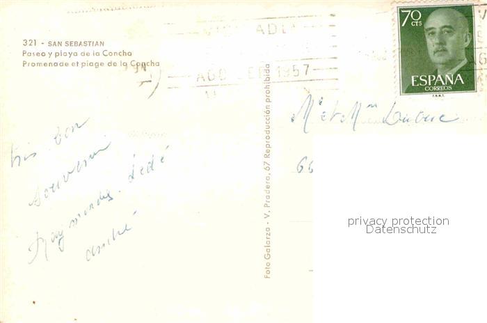 old postcard San Sebastian Pais Vasco ES Paseo y playa de la Concha postalisch gelaufen Erhaltung siehe scans [FriedD77]