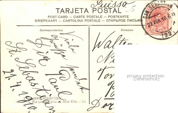 alte Postkarte San Sebastian Pais Vasco ES Tomada el Monte Ulia postalisch gelaufen Erhaltung siehe scans