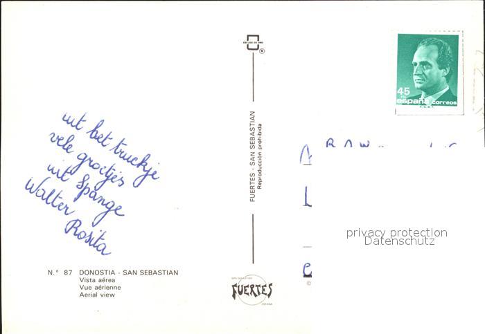 old postcard San Sebastian Pais Vasco ES Vista aerea postalisch gelaufen Erhaltung siehe scans
