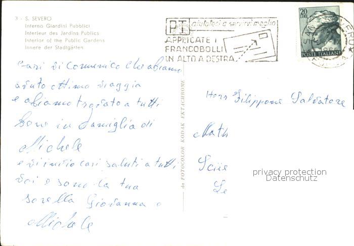 old postcard San Severo Interno Giardini Pubblici postalisch gelaufen Erhaltung siehe scans