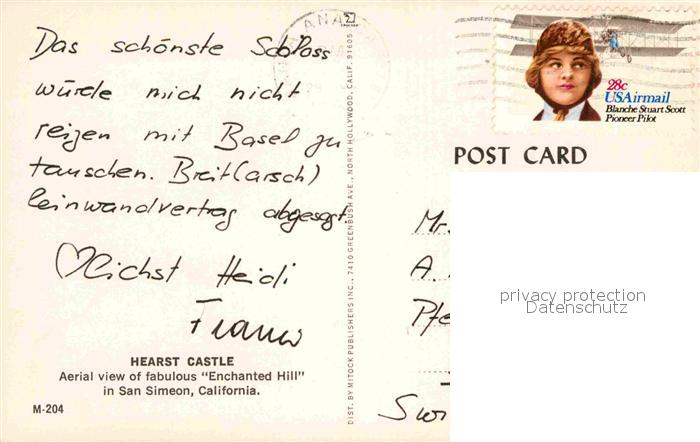 72763467 old postcard San Simeon Fliegeraufnahme Hearst Castle postalisch gelaufen Erhaltung siehe scans [LiesaD40] KatCode: 14140050000000