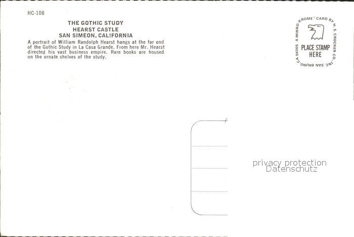 72314764 San Simeon Gothic Study Castle postalisch nicht gelaufen Erhaltung siehe scans KatCode: 14140050000000