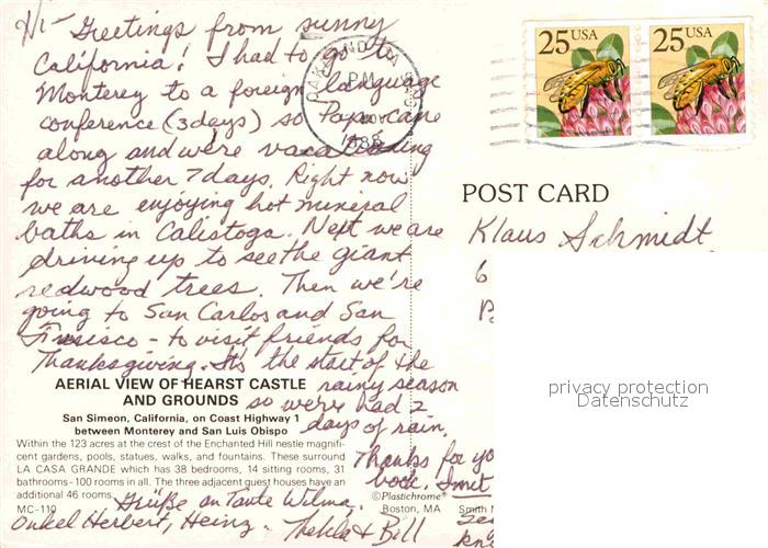 72905370 old postcard San Simeon Hearst Castle Fliegeraufnahme postalisch gelaufen Erhaltung siehe scans [NatalD47] KatCode: 14140050000000