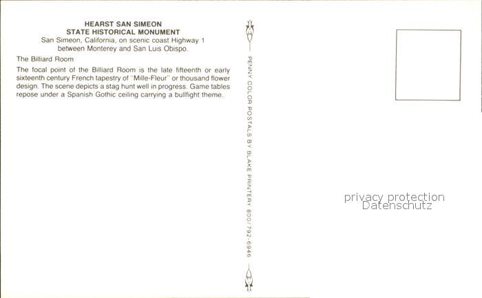72582240 San Simeon State Historical Monument Billiard Room postalisch nicht gelaufen Erhaltung siehe scans [LiesaD40] KatCode: 14140050000000