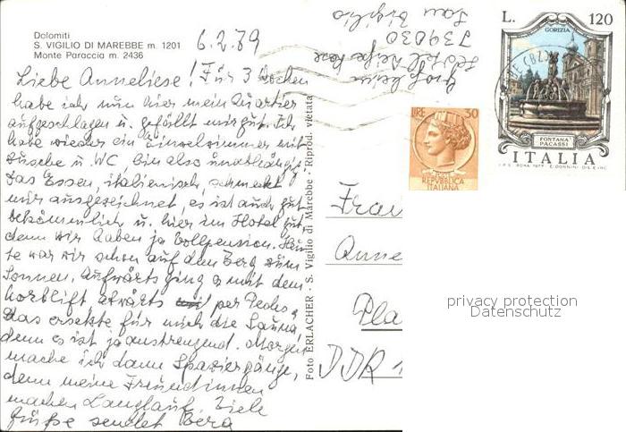 old postcard San Vigilio Di Marebbe Monte Paraccia postalisch gelaufen Erhaltung siehe scans