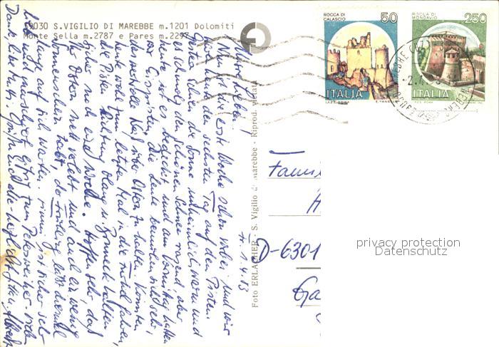 old postcard San Vigilio Di Marebbe Monte Sella e Pares Dolomiten Winterpanorama postalisch gelaufen Erhaltung siehe scans