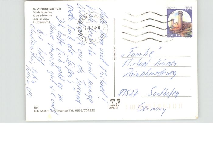 old postcard San Vincenzo Toscana Fliegeraufnahme postalisch gelaufen