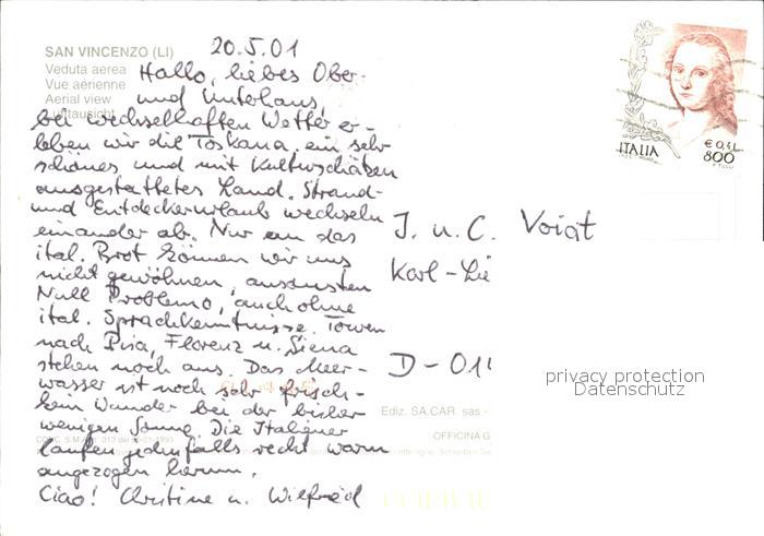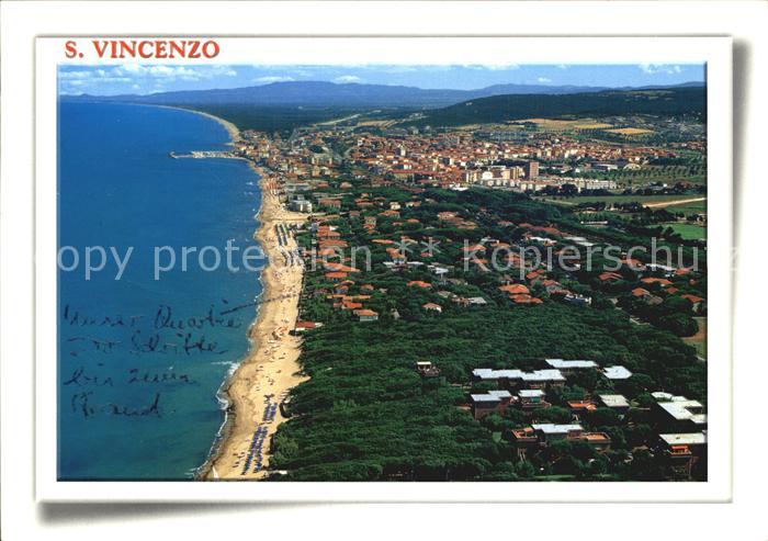 old postcard San Vincenzo Toscana Fliegeraufnahme mit Strand postalisch gelaufen Erhaltung siehe scans