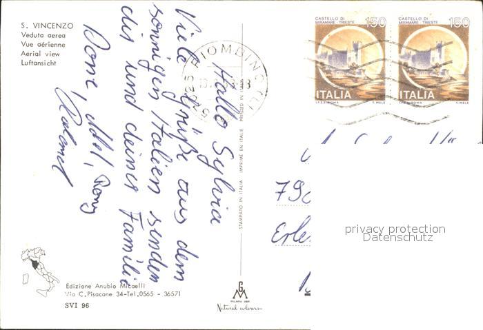 old postcard San Vincenzo Toscana Fliegeraufnahme mit Strand postalisch gelaufen Erhaltung siehe scans
