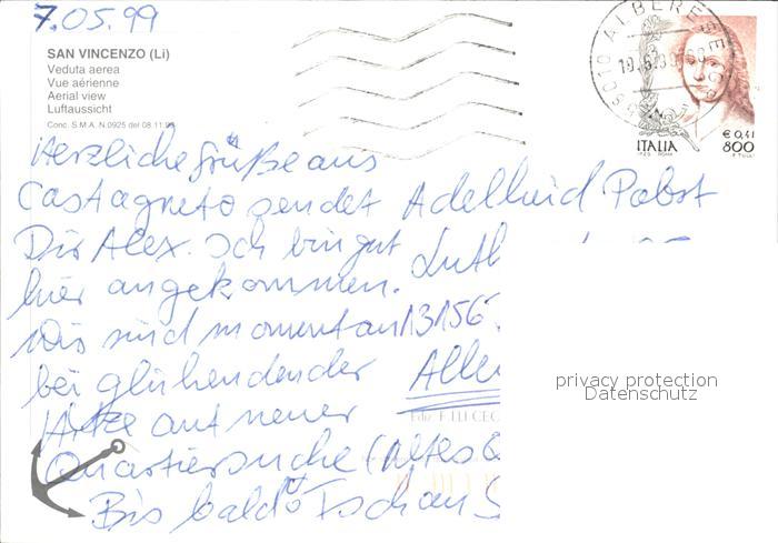 old postcard San Vincenzo Toscana Flugaufnahme postalisch gelaufen Erhaltung siehe scans