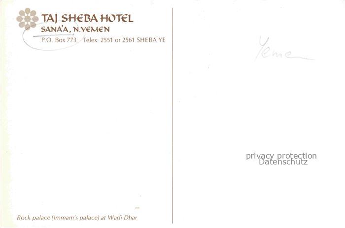74142102 Sanaa Yemen Taj Sheba Hotel postalisch nicht gelaufen Erhaltung siehe scans [WerneD78] KatCode: 13090