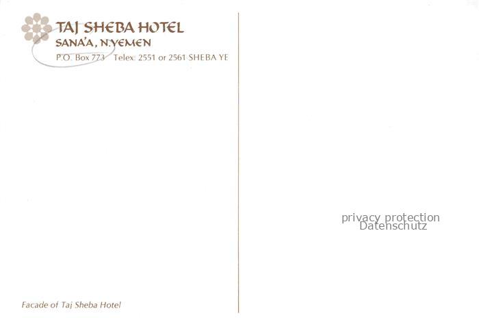 74142103 Sanaa Yemen Taj Sheba Hotel postalisch nicht gelaufen Erhaltung siehe scans [WerneD78] KatCode: 13090