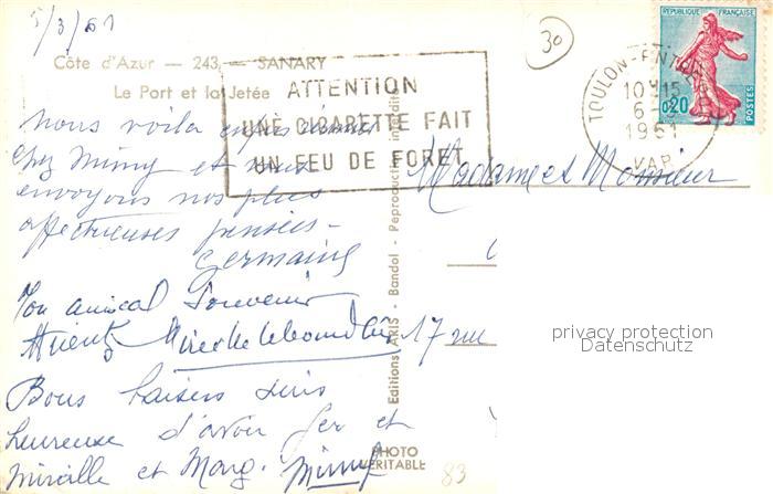 13484551 carte postale Sanary-sur-Mer Le Port et la Jetée Cote d Azur postalisch gelaufen Erhaltung siehe scans [FriedD77] KatCode: 11170083283123