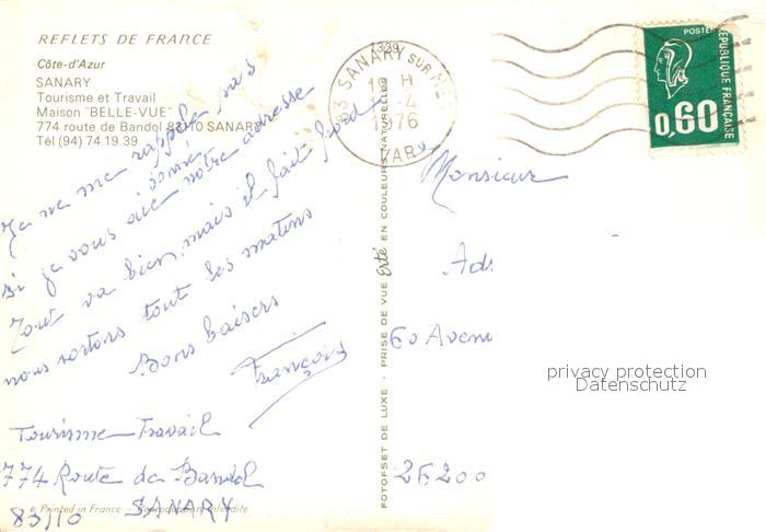 13545723 carte postale Sanary-sur-Mer Maison Belle Vue postalisch gelaufen Erhaltung siehe scans [WerneD78] KatCode: 11170083283123