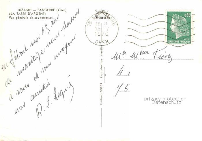 12787273 carte postale Sancerre La Tasse D`Argent postalisch gelaufen Erhaltung siehe scans [LiesaD40] KatCode: 11170018118241