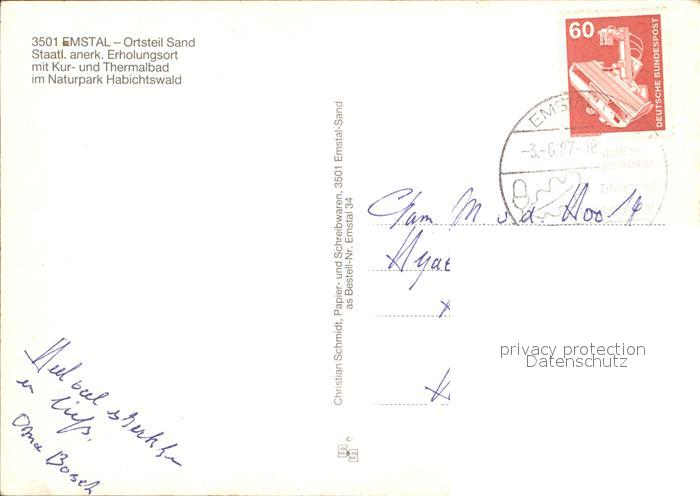 72022514 alte Postkarte Sand Bad Emstal Fliegeraufnahme Schwimmbad Hote Emstaler Hoehe postalisch gelaufen Erhaltung siehe scans KatCode: 11110006633006