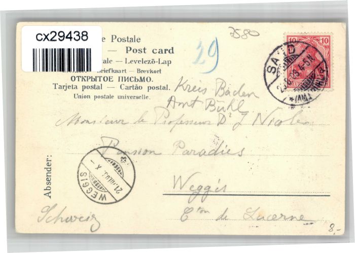 30924315 alte Postkarte Sand Buehl ertelbachfaelle Kurhaus Sand x postalisch gelaufen KatCode: 11110008216007