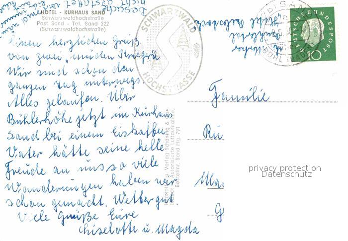 72758186 alte Postkarte Sand Buehl Fliegeraufnahme mit Hotel Kurhaus Sand postalisch gelaufen Erhaltung siehe scans [LiesaD40] KatCode: 11110008216007