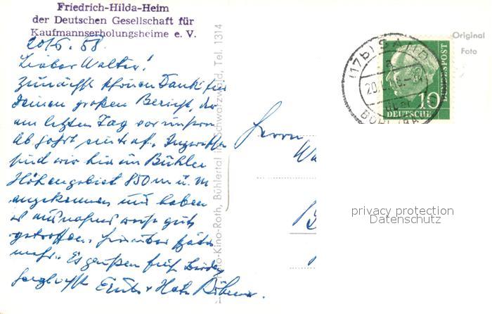 73282466 alte Postkarte Sand Buehl Friedrich-Hilda-Heim postalisch gelaufen Erhaltung siehe scans [NatalD47] KatCode: 11110008216007